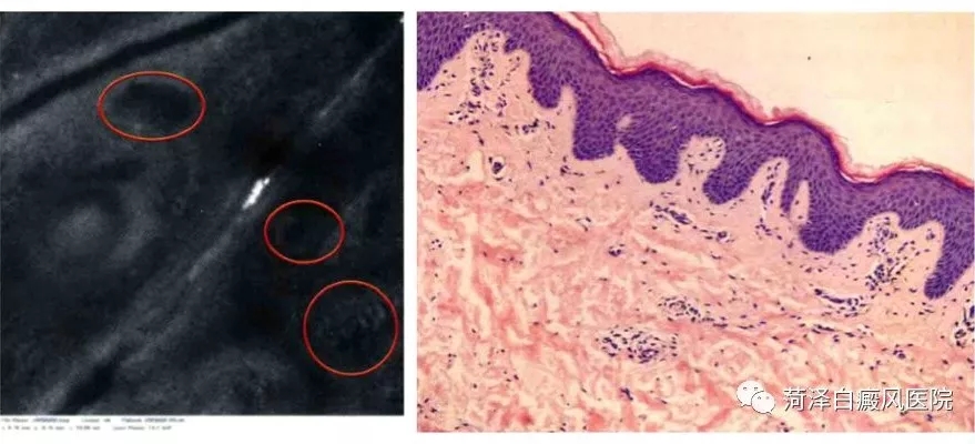 (白癜風皮損三維皮膚CT圖像) (白癜風皮損區(qū)組織病理(lǐ)圖像)